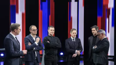 Vladimir Prebilič, Anže Logar, Matjaž Han, Miha Kordiš, Robert Golob, Luka Mesec- 19.02.2026 - Prvo soočenje predsednikov strank na RTV SLO - parlamentarne volitve 2026//FOTO: Jaka Gasar / Foto: Jaka Gasar
