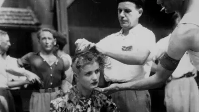 Prizor iz Motelimarja, kjer so po končani vojni takole obrili glave tistih, ki so se družili z nemškim okupatorjem. / Foto: Ameriški nacionalni arhiv