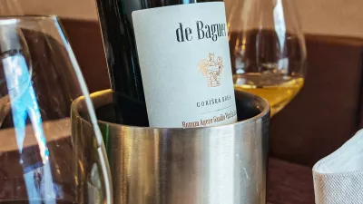 Zelo zanimiva je tudi vinska karta s poudarkom na slovenskih zvrsteh, imajo tudi kak šampanjec in ščepec tujine. Začeli smo s kozarcem Gueriline penine Castra (5,8 evra), nadaljevali s steklenico bele zvrsti De Baguer (55 evrov) iz Kleti Brda in končali s kozarcem modre frankinje iz jareninske kleti Dveri Pax (5,3 evra). Zraven pa smo seveda tudi pojedli meni, ki smo si ga lahko sestavili sami izmed jedi na jedilnem listu.