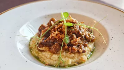 Nekaj več posredovanj je bilo v naslednjih fazah. Polento trdinke so tako obogatili z ragujem iz svinjskih ličk, teksturo dodali z ocvrto čebulo in s tem pripravili res solidno toplo predjed.