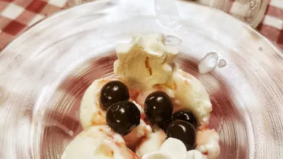 Še eno presenečenje je sledilo pri sladicah. Tako sladkega tiramisuja s tako poudarjeno kavo na dnu je skoraj nemogoče dobiti kjerkoli drugje, poskusili smo tudi krepak sladoled iz mlečnega cveta z amarenami in meringami. Celotna ponudba sladic je bila tokrat vremenu primerno usmerjena v sladoledne možnosti, v hladnejšem delu leta pa strežejo tudi svojo različico gibanice.