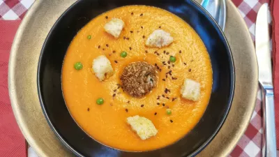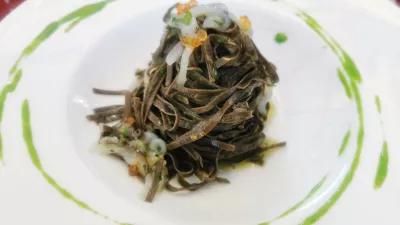 Iz kuhinje so nas pozdravili s kozarčkom gazpača. Miniaturna hladna juha je bila zelo pristna verzija španskega originala, obogatijo jo z olivami in mladim sirom. Trenutek zatem so bile na svojem mestu tudi prve predjedi. Ob školjkah, inčunih in sardelah velja pokusiti hladne rezance s surovimi kalamari, ikrami in peteršiljevim oljem. Zanimiva in osvežilna morska solata za 12 evrov. Na drugi strani je morska degustacija oziroma tris, ki ga sestavljajo mečarica na kurkumini kremi in z okisano zelenjavo, inčuni s paradižnikom ter mini sipe za bučkinih rezancih. Krožnik teh treh specialitet stane 15 evrov in je brez dvoma prvi vrhunec večera.