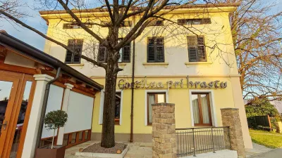 Če je bil prostor večji, kot smo pričakovali, je bila večja tudi gneča. Ob kakšnih štirih, pol petih popoldne so se v jedilnicah gnetle velike skupine, očitno bolje od nas obveščene, da je v tej gostilni mogoče jesti obilno, okusno in niti ne predrago, pa še z malce goriškega pridiha. Pravzaprav z veliko goriškega pridiha, ker smo prišli v času, ko v ospredje postavljajo jedi z goriško vrtnico, znamenitim radičem iz teh krajev.