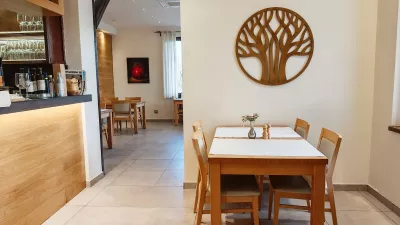 Nasitni testeninski krožniki so pri hrastu po okoli 15 evrov in podobno bogato se je naše pozno kosilo nadaljevalo. Spet velikodušno odmerjen osso buco s krepko omako, porcija je bila velika, cena pa niti ne, 21 evrov. Če je komu, ampak to bodo res redki, mesa premalo, ga spremlja še skutni štrukelj, ki je jed zapečatil.