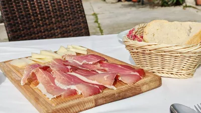 K hrani. Zdi se, da je od starih časov, ko smo se večkrat zabavali v Belvedurju, največja razlika pri vseprisotni natakarici, ki je sama skrbela za kakih sedem, osem miz na dvorišču pa še za kakšnega gosta v malce mračni notranjosti gostilne. Hitela je gor in dol in kljub težki nalogi postreči 30 bolj tujih kot domačih gostov ji je uspelo odigrati dobro partijo. Je pa res, da v verjetno najbolj tipični istrski gostilni na naši strani meje ponudba jedi ni tako obsežna, kot je kdaj že bila. Imajo narezek, na katerem ni več istrske salame, pri fužih sta na izbiro zgolj dve omaki, ob dveh toplih predjedeh pa je na svojem mestu zgolj še ena mesnina. Pri vinih pa sploh ne komplicirajo. Imajo malvazijo in refošk.