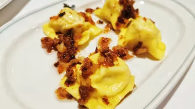 Ponujajo kvartet juh za kakšne štiri evre na krožnik, na svojem mestu je goveja s fritati, ki je spričo količine prikuhe skoraj bližje gostim juham, nujno pa je treba pokusiti tudi hišno specialiteto, mesne žlikrofe, ki jih prav tako zakuhajo v govejo juho. Žlikrofi lahko nastopijo tudi kot samostojna (pred)jed, lahko jih dobite s sirovo omako, z ocvirki ali pa kar z obojim hkrati. Smo se strinjali in za prilogo ob glavnih jedeh vzeli žlikrofe z ocvirki. Stanejo osem evrov in so sijajni.