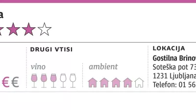 Ljubitelji dobre stare slovenske kuhinje v Ljubljani in bližnji okolici vse bolj hvalijo Strička v Novih Jaršah in Juvana v Domžalah. K omenjenim gotovo sodita tudi Žabar na Viču in Kovač v Tomačevem, po novem pa so nas ljubitelji tedenskih poslovnih kosil usmerili k Brinovcu.