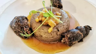 Ker je ob našem obisku vsaj uradno še bila zima, smo spoznali tudi Mencingerjev pogled na koline – mini krvavice so bile v svinjski mrežici, kot priloga je nastopil ajdov kolaček s kislo smetano in ocvirki, na drugi strani pa sijajen krompirjev štrukelj s fižolom na zelo smetanovi repi z ocvirki. Jasno je, da so kljub manjšim, degustacijskim velikostim takšne jedi po prleško nasitne. Presežki pa niso vezani na kakšne kuharske inovacije, ampak predvsem na povezanost sestavin in kombinacijo z lokalno vinsko kapljico.