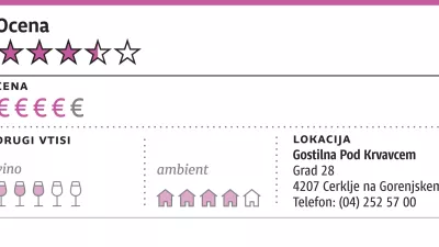V ozadju igrajo slovenske popevke, medtem ko k mizam na začetku nosijo različne žganice z macesnovčkom na čelu. Če ste za »nižje alkohole«, imajo na mestu popularno Slapšakovo penino brut, sicer pa je na hladnem tudi kak kozarec Krvavške penine. Ta ne prihaja s krvavških pobočij, kot bi pomislili, ampak gre za hišni peneči zelen iz največje vipavske kleti. Naše omizje je najprej pozdravilo Slapšakovo penino za šest evrov in pol na kozarec in tudi nato ostalo v istih krajih s kletjo Albiano oziroma njihovim prijetnim chardonnayjem za tri evre in pol, glavne jedi je spremljala klet Movia z rdečo zvrstjo Turno za pet evrov. Škoda, da pod Krvavcem solidne vinske ponudbe ne zapišejo na vinski list.