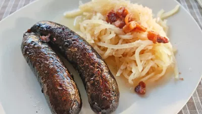 Morda nad ponudbo nismo bili dovolj navdušeni v uvodnih trenutkih, nas je pa potem zadovoljila krvavica, prava, velika, naša favoritinja, ki je nikoli ne zavrnemo. Za deset evrov jo podložijo le z zeljem, druge priloge, recimo praženi krompir ali žgance, je treba naročiti in seveda plačati posebej. Mi smo si vzeli kmečki krompir s slanino, čebulo in kislo smetano (devet evrov, da, kar devet evrov). V nasprotju s krvavico so popolnoma razočarala pražena jetrca. Bila so trda in sprijeta, da jih je bilo tudi z nožem težko ločiti. Kdo ve, morda jih narezana spravijo že v zamrzovalnik. In jasno, za enajst evrov ob čebuli, ki je tako ali tako del recepta, ne ponudijo drugega. Saj je tu kruh, so pojasnili. Mi pa smo samo molili, da nam istih vilic, ki so nabadale najprej feto in potem čebulo, ne bo treba uporabiti še pri vršiški kremšniti, lokalni sladici, ki na čase Bojana Križaja in Jureta Koširja spominja bolj kot pleskavice (15 evrov) in kalamari (16 evrov), ki jih v mnogih oblikah tudi ponujajo vsega hudega vajenim gostom.