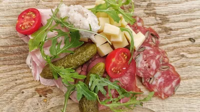 Tudi jedilni list kaže na širine možnosti, toda naš trio tisto popoldne ni ciljal na telečji tomahavk s hrustljavo panceto, orade, hobotnico, razne lignje in špagete z vongolami. Ob Puklavčevi ne ravno suhi muškatni penini in kasneje ob Kobalovem polsuhem šiponu smo se veselili krožnika hladnih štajerskih dobrot, na katerem so v družbi sira, zaseke, kumar in paradižnika predstavili suho salamo z bučnimi semeni, okisani jezik in šunko. Za šest evrov takšne dilce, kot pravijo domačemu krožniku, ne boste dobili nikjer.