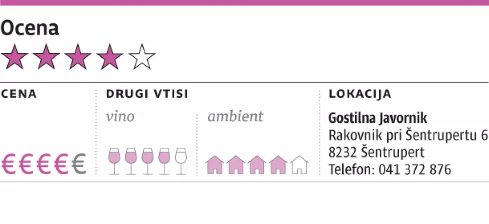 Javornik je prenovljeno gostišče ali kar gostinski multiprostor, ki lahko hkrati zadovolji ljubitelje razkošnih sestavin in tiste, ki prisegajo na lokalno hrano, pa še kakšno poroko za povrh lahko organizirajo, medtem ko se v veliki jedilnici ukvarjate z domačim sezamovim kolačkom iz krušne peči, ki je ne samo ostala od let pred prenovo, ampak še vedno tvori najpomembnejši del Javornikove ponudbe.