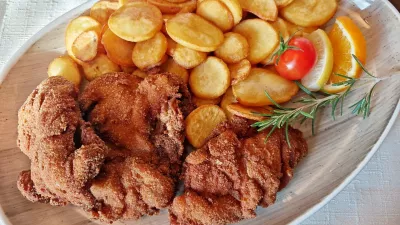 Pri Antonu imajo tudi ocvrtega piščanca v več različicah in količinah, tri izkoščičena bedra v spremstvu krompirjevih cekinov so recimo 12 evrov, pol piščanca z vsemi prilogami pa stane 14 evrov.