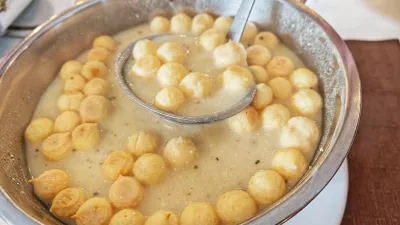 Podobno kot v drugih fazah imajo tudi pri juhah obilo različnih možnosti, med petimi celo ribjo, pa še obvezni gobovo in zelenjavno juho. Našo pozornost pa je pritegnila predvsem štajerska kisla juha, ki jo tako kot druge na mizo postavijo v velikem jušniku.