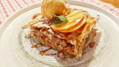 Priznati moramo, da smo pri sladicah pričakovali še kakšno bolj znano domačo sladico, recimo potico ali kremno rezino. Ponudili so gibanico ali čokoladni sufle, na koncu smo se odločili za spet kar velik kos jabolčnega zavitka, ki ga dodatno zasladijo s karamelo in opremijo z vaniljevim sladoledom. Omeniti velja, da so pri Tulipanu ena redkih gostinskih postojank, ki še skuhajo turško kavo, to pa tudi veliko šteje.