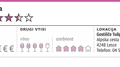 Pri Tulipanu razigranim gostom lahko ponudijo kosila že za 16 evrov, ob nedeljah za 20. To je v primerjavi z bližnjim Bledom več kot ugodno. Še posebej zato, ker se ne skrivajo za majhnimi porcijami, ampak udarijo s polnimi krožniki domače hrane, ki jim gre vseeno zameriti preveč koketiranja z nepotrebnimi grahovimi poganjki in rukolo. Po drugi strani pri skoraj vsaki jedi omenjajo kmetije, kjer so meso, sire ali zelenjavo nabavili, kar kaže na idejo sledljivosti kuhinje, ki sicer sodeluje tudi v simpatičnem projektu Okusi Radol'ce.