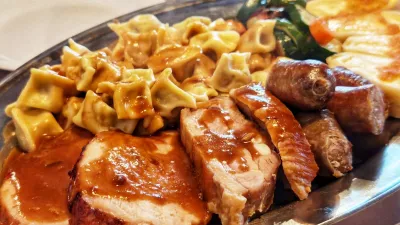 Nekje smo prebrali, da so ravno v tej jedilnici najboljši, in morali smo jih poskusiti. Nekaj malega so nam povedali, kakšni morajo biti, kako jih pripravijo, a je neizpodbitno, da vseh detajlov ne izdajo. Skrivnost. Pravzaprav so bili res izvrstni idrijski žlikrofi konkretna spremljava glavnih jedi, enostavnih mesnin, svinjske pečenke z božansko omako, izvrstnih svinjskih rebrc in dišečih domačih pečenic. Ob krepki porciji žlikrofov so sodelovali še skutni štruklji z drobtinami in porcija različne pražene zelenjave in gob. V nedeljo okoli dveh si težko želite še več.