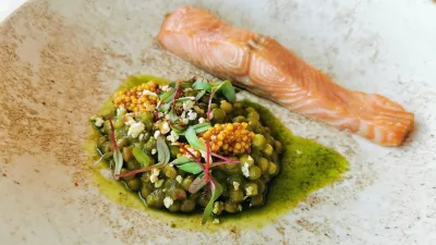 Očiščen kos fileja Zupanove postrvi je obetal sam po sebi, testenine fregola s špinačo, gorčičnimi semeni in pečeno skuto pa so okuse dvignile še za raven višje in lahko bi rekli, da smo jedli eno najbolj zanimivih sladkovodnih ribjih jedi letos.