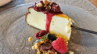 Na drugi strani so nam pet čevapčičev ovili v slanino in dobili smo balkansko specialiteto, ki je od daleč celo malce spominjala na dobrote Leskovačkega dvora na Dunajski v Ljubljani, so pa dišečo peterico skupaj s kajmakom zaračunali kar 17 evrov, kar enostavno ni prav, ne glede na meso, ki so ga uporabili. A naj spet dodamo, da se je kuhinja v vseh fazah, razen pri argentinski premium govedini, ki je nismo pokusili, izkazala. Še najmanj smo bili zadovoljni pri malce presuhi (skoraj prekmurski) gibanici, medtem ko je bila obilna skutna torta zelo dobra.