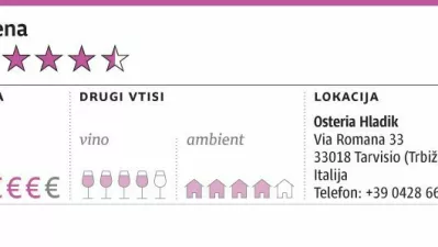 Prinčičevo vino je ostalo v kozarcih tudi ob raviolih z rikoto v pestu iz rukole, na drugi strani so k rezancem skuhali ragu divjega prašiča. Ne moremo se odločiti, katere testenine so bile boljše, sta pa obe res konkretni porciji stali po 16 evrov. Morda malce pretiravamo, a za trenutek se nam je zdelo, da Hladik spominja na zdaj že kar slavno Tavernetto v Vidmu, lokal je podobno opremljen z množico vinskih paketov in kartonov ter tisoči steklenic, ki so jih gostje spili v preteklosti. Je pa ponudba manj široka, še posebej, ko gre za vina. Čeprav …
