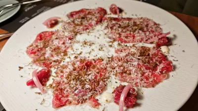 Tudi nadaljevanje je bilo pretežno nevegetarijansko, čeprav imajo v trenutno najboljši BTC-restavraciji tudi ribe. Gojijo svoj pogled na marinirano govedino, gre za karpačo s tartufi in parmezanom, pri katerem pa na krožnik ob tankih rezinah postavijo tudi kocke govejega fileja (18,50 evra). Za evro cenejši je tatarski biftek, začinjen zgolj z osnovnimi začimbami in dodatki, pospremijo ga z zmehčanim maslom, solatko in res izvrstnim pomfritom. Začetek je v vsakem primeru obetal, pa naj gre za francoske ali italijanske vplive, ki so jih napovedali. Dejstvo je, da se za vrati kuhinje skriva nekdo, ki o kuhi ve več kot to, da se splača s poceni sestavinami šokirati publiko.