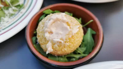 Za začetek jedilni list našteje prigrizke, ki so lahko hladne predjedi ali pa gredo h koktajlom oziroma vinu in stanejo od tri do devet evrov. Imajo bakalar, tatarski biftek, humus in simpatične ocvrtke, polnjene z namazom iz soške postrvi. Tatarski biftek je zelo začinjen, ne pikanten, ampak kremast, pomešan s hišno dimljeno majonezo, posut s sušenimi paradižniki in nastrganim sirom ter odločno preveč rukole. Narezek, nekaj več ga je bilo, sestavijo s sirom, mortadelo, pršutom in salamo. Olive, ki jih priložijo, so drugorazredne, pretrde in nemesnate.