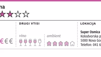 Super osmica je večnamenski prostor, ki povezuje kulturo, umetnost in lokalno gastronomijo. Novogoriška mestna občina je obnovila obstoječi objekt in ga namenila novim vsebinam. To lahko preberemo na uradnih spletnih straneh o projektu obnovljene hiške, ki je stal, reci in piši, milijon in 800 tisoč evrov. Hiška z lokalom stoji ob železniški postaji na Trgu Evrope oziroma Piazza della Transalpina, kjer se prosto hodi čez mejo – hecno, le 100 metrov stran so na mejnem prehodu italijanske policijske kontrole. Kontrole, ki kažejo na norost modernih politikov, ki mislijo, da neumni begunci na zahod hodijo čez kontrolo, ne pa čez trg, tam, kjer jih nihče ne bi ustavil.