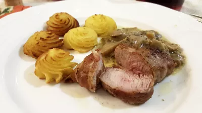 Bolj poglobljeni preučevalci zgodb, povezanih s prehranjevanjem v preteklosti, so v tej jedi našli celo teorijo o tem, da so slavo na tak način pripravljenemu krompirju v zadnjih dekadah 18. stoletja spisali namenoma, da bi vzpodbudili zanimanje za krompir tudi med kmečkim in delavskim prebivalstvom, saj je bilo v sredini 18. stoletja pridelovanje krompirja v Franciji prepovedano. Francoski parlament je leta 1748 namreč prepovedal gojenje krompirja – dekret so odpravili šele leta 1772 – ker so bili takrat prepričani, da povzroča gobavost. Kasneje, v 19. stoletju, so recept za vojvodinjin krompir prinesli priseljenci tudi v ZDA, kjer je postal prava zvezdniška jed, dostopna tudi običajnim gospodinjstvom. Med ameriško gospodarsko krizo leta 1929 je zvezna vlada sodelovala s kopico državnih kmetijskih agencij, da bi vzpodbudili gojenje krompirja, ameriški urad za gospodinjstvo pa je potrošnike prepričeval, naj pokusijo manj običajne jedi iz krompirja, med drugim krompir vojvodinje. Leta 1943 je takratna prva dama Eleanor Roosevelt javnosti posredovala jedilnike in recepte za pripravo devetih obrokov, ki so bili postreženi v Beli hiši, in ena izmed teh jedi je bil tudi vojvodinjin krompir, po končani vojni pa so v New York Timesu leta 1949 ob pečenem piščancu ali pečeni ribi promovirali krompir vojvodinje kot poceni alternativo govedini. Vojvodinjin krompir se je znašel tudi v zgodovinskih spisih, ki omenjajo prijateljstvo med Sovjetsko zvezo in ZDA. Ko se je septembra 1959 ameriški predsednik Dwight Eisenhower srečal s sovjetskim voditeljem Nikito Hruščovom v Camp Davidu, je bilo v poročilu s sestanka med drugim omenjeno, da je bila ena izmed prilog k pečenim rebrom in pečenemu rdečemu hlastaču vojvodinjin krompir.