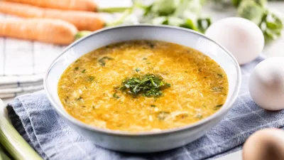 Na maslu prepražimo čebulo, da postekleni. Dodamo naribane korenčke in pražimo 3–4 minute, da se rahlo zmehčajo, ter pridamo papriko, nato pa prilijemo še jušno osnovo, dodamo lovorjev list in kuhamo približno 10–15 minut, da se korenje povsem zmehča. Medtem v skodelici razžvrkljamo jajca in jih počasi vlivamo v juho. Z vilicami ali metlico neprestano rahlo mešamo, da nastanejo nekakšni jajčni trakci. Začinimo s soljo, poprom in kuhamo še tri minute, nato pa juho postrežemo.