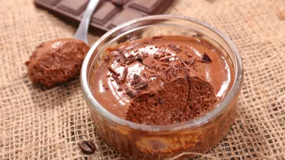 Najprej nasekljamo čokolado in jo stopimo nad vodno kopeljo. Ko je že tekoča, vanjo vmešamo maslo in pustimo, da se nekolikanj ohladi. Jajca ubijemo in ločimo rumenjake, ki jih v posebni posodici stepemo in vmešamo v rahlo ohlajeno čokolado. V drugi posodi začnemo stepati beljake, ki jim dodamo ščepec soli in jim postopoma dodajamo sladkor, da dobimo čvrst sneg, ki ga nato postopoma in zelo nežno vmešamo v čokoladno zmes, ki jo nato razdelimo v štiri kozarce, te pa za vsaj tri, še raje štiri ure postavimo v hladilnik. Preden z njim postrežemo, mousse okrasimo še z malce naribane čokolade in kavnim zrnom.