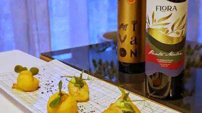 Hrana je v Badiju neločljivo povezana z morjem in istrskimi specialitetami, kot so tartufi, pa tudi lokalnimi vini. Hišni vinar je sosed Moreno Coronica, tudi naši ekipi ljub pridelovalec, ki je večerji najprej pomagal s penečim uvodom. Peneča malvazija CO Due (6,5 evra za kozarec) je več kot solidna, njegova Gran Malvazija (43 evrov za steklenico), ki nas je kasneje spremljala ob degustaciji, pa konkretno vino, eno najbolj dovršenih belih v Istri.