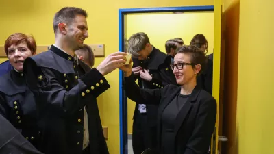 Godbeno društvo je bilo polna tri stoletja domena moških. Šele leta 1971 so v svoje vrste sprejeli prvo žensko godbenico, nato pa je moralo miniti še pol stoletja, da so ženski prepustili tudi vodenje godbe. Prva in aktualna predsednica Nives Koželj Bizjak se nasmeji, to bo zagotovo nekaj, kar bo lahko zapisala v svoj življenjepis. Bližal se je že nastop, ko se je še vrtela med tem in onim opravkom, in preden smo ji še mi ukradli nekaj minut, si je vzela trenutek, da zleze v uniformo. Da slučajno v kaosu priprav na oder ne odkoraka v napačnih hlačah. »Biti pri godbi v letu, ko praznuje 360 let, in jo hkrati tudi voditi je izjemno lepo, a tudi naporno. Za člane je bilo letos veliko vaj in nastopov, kar jim je vzelo kar nekaj prostega časa, če si poleg tega še v vlogi predsednice, pa je obveznosti še toliko več,« je prikimala. Na vaje hodi zaradi glasbe, a tudi zaradi prijateljskih vezi, ki se tkejo med njimi. Veliko godb je bilo na svetu, mnoge so nastale še prej kot idrijska, a le idrijski je uspelo preživeti tako dolgo pot. Nives Koželj Bizjak razmišlja, da mora biti ta trdoživost bržkone povezana z živim srebrom.