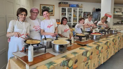 Z Majence nihče ne bo odšel lačen in žejen, ko se po strmi cesti pripelje do jedra vasi. Ta je Dolina samo po imenu, v resnici leži na hribu z razgledom na Tržaški zaliv. Na meniju je seveda meso na žaru, glavna sladica Majence pa so palačinke, ki so jih na šestih štedilnikih sproti pekle žene iz Doline. »Najbrž smo jih v teh letih skupaj spekle že milijon,« so nam naštele. Obiskovalci so lahko spoznali obilico lokalnega vina in ekstra deviškega oljčnega olja, ki so ju okoliški vinarji prijavili na razstavo in ocenjevanje. Strokovna in ljudska žirija sta izbrali najboljše. Vodena pokušnja vina je potekala v prenovljenem pastoralnem domu lokalnega župnišča, ki ga je za Majenco na široko odprl župnik Tomaž Kunaver.