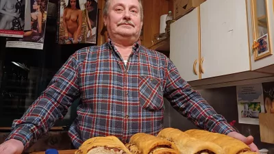 V laufarski kuhinji je z nabranimi dobrotami gospodaril Ciril, ki nam je namesto priimka raje izdal svoje partizansko ime. Pravijo mu Julijano. Član laufarije je od leta 1983. Ker je mlajših, kondicijsko bolj utrjenih članov za terenske obhode in prelete dovolj, danes skrbi za to, da laufarji med pripravami na pusta niso lačni. Malce je prešteval in zaokrožil: vsako leto v predpustnem času zanje speče okoli 40 ocvirkovc. Tudi pri receptu očitno veljajo skrivnosti, strnil ga je v vsega nekaj besed: »Nadev naj bo tako obilen, da mora človek zraven jesti kruh.« Vanjo zavije, kar so laufarji nabrali pri dobrih ljudeh po Cerkljanskem: ocvirke, suhe klobase, panceto, špeh in druge domače suhomesnate izdelke. »Edini problem ocvirkovce je, da je vedno zmanjka,« se je nasmejal. Nad njim so na lestencu viseli svinjski parklji.