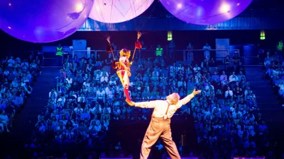 Točno tako. V delih nekaterih točk bodo umetniki tudi poleteli nad občinstvo in med občinstvo. Obiskovalci bodo nastopajočega lahko tudi dobesedno potisnili, da bo poletel nazaj, in podobno. Torej bo izkoriščena celotna arena. Brez zamere, a več ne bi izdal, sicer predstava ne bo presenečenje.