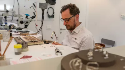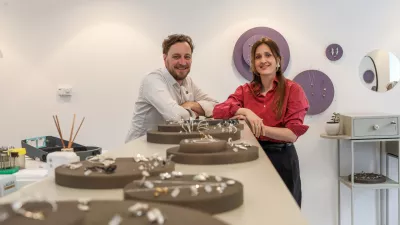 Da so za nakitom vedno zgodbe in da ima ta velikokrat večjo simbolno in čustveno vrednost od materialne, sta nam v sosednjem prostoru potrdila tudi profesionalna oblikovalca nakita Sanda Vidmar in Peter Dragolič. Studio za oblikovanje nakita Juvelirij, kjer poleg njiju ustvarja še Kristina Drnovšek, ni klasična zlatarna, ampak čisto prava delavnica, kjer lahko stranke iz prve roke izvedo, kdo stoji za nakitom in kako ta nastane. »Ko poliramo, smo črni kot mehaniki. Pa hrupno je pogosto. Večkrat se porežemo, poškodujemo se med vrtanjem, kakšna fina žagica se kdaj zapiči v prst,« se je posmejal Peter, zlatar stare šole, ki je še imel priložnost obiskovati zlatarsko šolo v Celju. Osrednji del njegove delovne mize je nekakšen lesen nos, zlatarji mu pravijo fajlnadl, ob katerega upre material, da ga lažje oblikuje.
