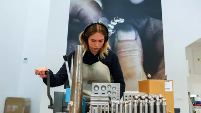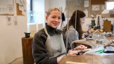 Študentka drugega letnika oblikovanja tekstilij in oblačil na Naravoslovnotehniški fakulteti Jerca Perne je iz drevesnega lubja in kovine izdelovala obesek. Šivalni stroj je zamenjala za žago in pilo. »Nakit izdelujemo v okviru izbirnega predmeta. Dobili smo nalogo, da ga ustvarimo iz povsem običajnih stvari, ki jih najdemo doma ali v naravi. Najprej je bila ideja, nato skica, sledil je prototip in zdaj je na vrsti izvedba,« je razložila in dodala, da je nakit zanjo način izražanja. »Rada imam 'odbit' nakit, ki pritegne pozornost, doma imam denimo ogrlico iz starega jedilnega pribora. Sicer pa je moj izbor nakita odvisen od priložnosti. Če grem v klub, si bom nadela nekaj opaznejšega, za vsak dan nekaj bolj minimalističnega, kot gostja na poroki kaj elegantnejšega,« je pripovedovala med piljenjem in ovrgla prepričanje, da mladi danes nimajo več odnosa do ročno izdelanega nakita.