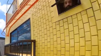 Majhna stanovanja so na Japonskem nekaj povsem običajnega, a to je verjetno eno najmanjših doslej. Zgradba je svetlorumene barve in spominja na pokončno domino ploščico, najožja stranica podolgovate hiše meri manj kot 60 centimetrov. Zaradi trikotne zasnove je bilo v objekt mogoče umestiti pet nadstropij in klet, v katerih so štirje ločeni apartmaji. Napisi na fasadi razkrivajo, da so v pritličju nekoč delovali mikro bari.