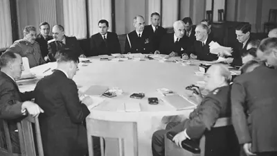Veliki trije so na jaltski konferenci med drugim razpravljali o zaključnih vojaških operacijah proti Nemčiji in o njeni povojni usodi, politični in ekonomski ureditvi Poljske, sojenju nacističnim vojnim zločincem ter vključitvi Sovjetske zveze v boje proti Japonski na azijskem in pacifiškem bojišču. Na konferenci sta Churchill in Roosevelt zaradi uveljavitve lastnih interesov Stalinu popustila, kar pa se je izkazalo za napako.
