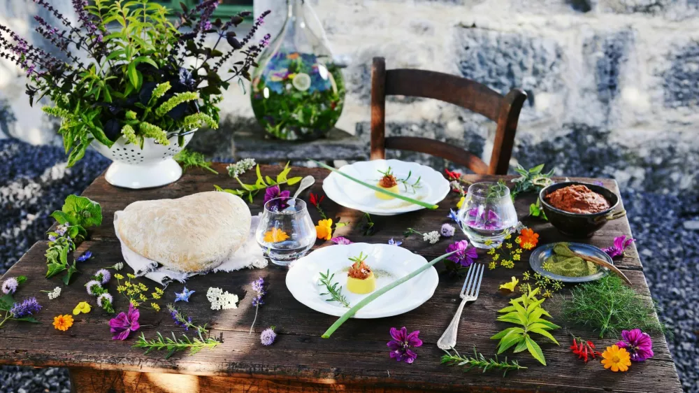 Ekskluzivno in v čudovito zgodbo povezano spoznavanje naravne in kulturne krajine Brkinov in Krasa se začne natanko na stiku teh dveh različnih, a tesno povezanih svetov. Tam, kjer se flišni griči Brkinov malce zravnajo in dotaknejo apnenca kraških tal, vas gostoljubno sprejme domačija Belajevi. V skrbno obnovljeni družinski hiši vedno diši po zeliščih, na njihovem vrtu pa lahko te dišeče rastline, med katerimi kraljuje kraški šetraj, spoznate od blizu, se jih dotaknete in jih nekaj naberete za domov. Med zgodbami o družinski tradiciji in pogovorom o blagodejnosti številnih zelišč boste lahko pomagali pripraviti tipično jed, ki ji te kraške rastlinice dajejo edinstven karakter. To bo odlična, dišeča malica pred kolesarjenjem po slikovitem Krasu.