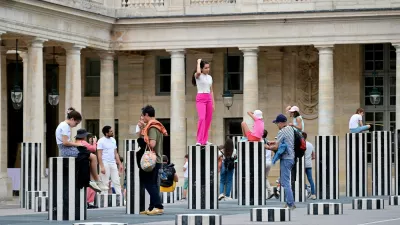 Ljudje radi obiščejo Les Deux Plateaux, splošno znane kot Burenovi stebri, francoskega umetnika Daniela Burena in arhitekta Patricka Bouchaina.  Foto: profimedia