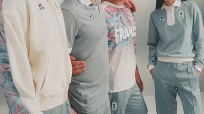 Francoska ekipa ostaja zvesta znamki Le Coq Sportif, ki združuje tehnične materiale in francosko eleganco. Kolekcijo zaznamujejo ledeno modri, kremni in rdeči toni, kroji s pridihom 70. let ter inovativna reinterpretacija zastave, ki spominja na topografski zemljevid.