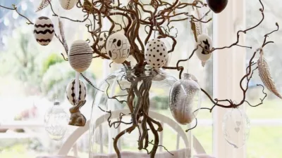 Sodobni velikonočni okraski temeljijo na plasteh in skrbno izbranih detajlih, ki pripovedujejo zgodbo. Namesto da bi prostor natrpali, je cilj ustvariti nekaj vizualno zanimivih točk, ki pritegnejo pozornost.