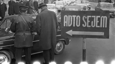 Kljub temu da je hkrati potekal sejem novih in rabljenih avtomobilov na Gospodarskem razstavišču, je mnogo ljudi prišlo na avtomobilski sejem pri ljubljanski klavnici. / Foto: Marjan Ciglič, hrani Muzej novejše in sodobne zgodovine Slovenije