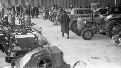 Sejem Kmetijske mehanizacije na Gospodarskem razstavišču: razstava in prodaja kmetijskih strojev in priključkov domačih podjetij in iz uvoza. Stroje so kupci lahko kupili tako v dinarjih kot v devizah. / Foto: Marjan Ciglič, hrani Muzej novejše in sodobne zgodovine Slovenije