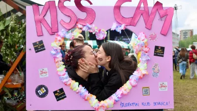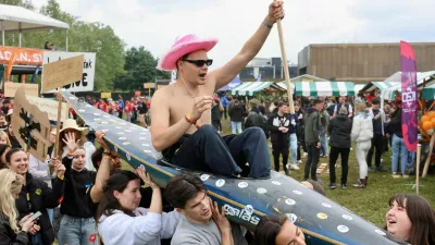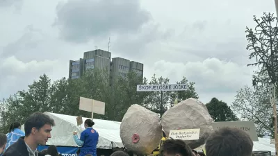 Na mimohodu so najbolj izstopali študentje iz Škofje Loke, ki so letos pripravili veliko maketo ženskih prsi in jo poimenovali “Škofjeloške joške”.