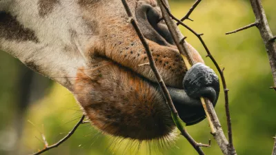 Najbolj znan primer te prilagoditve najdemo pri žirafah in njihovih najbližjih sorodnikih, okapijih. Jezik žirafe, ki lahko v dolžino meri tudi do 50 centimetrov, je izjemno spreten in močan organ. Z njim objemajo in trgajo liste z bodičastih akacijevih vej, kar pomeni, da je njihov jezik več ur dnevno izpostavljen neusmiljenemu afriškemu soncu.