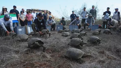 Ekvadorske oblasti so ta teden izpustile 158 mladih želv, starih od 8 to 13 let. To je prva faza obsežnejšega načrta, v okviru katerega nameravajo na otok vrniti skupno 700 živali.