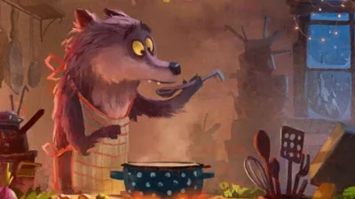Volk se v pripovedi iskreno trudi, da bi se povezal s sosedi iz gozda, vendar mu nikakor ne uspe pomiriti njihovih strahov. Odloči se, da se bo spremenil, in začne kuhati ter peči jedi iz zelenjave. Zgodba se konča, ko se preobraženi volk pojavi na božični pojedini z domačo pito.