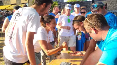 Prvenstvo v Pregari je trajalo tri dni. V petek popoldne so se začeli zbirati igralci z vseh vetrov. Dobro je namreč, da pred tekmovanjem zaigrajo neformalno, za veselje, tudi zato, da se različice igre in pravila uskladijo. Kako lahko igrajo Katalonci in Slovenci skupaj, kako se sporazumejo? »Povsem preprosto, jezik sploh ni problem. Istrani jo igramo v istrobeneškem narečju, ki prav tako kot italijanščina izhaja iz latinskega korena. V francoščini in španščini so poimenovanja števil podobna. Tri je tre, tres, trois …« šteje Stepančič. Glasna igra osuši grlo in skoraj pravilo je, da so tekmovalci naslednji dan hripavi ali brez glasu. Igra torej kar kliče po pijači, da lažje steče. Ne preseneča, da je na sobotnih celodnevnih dvobojih že popoldne zmanjkalo piva in so morali pripeljati novo pošiljko. Številni igralci pa so tudi po tekmovanju igrali moro še pozno v noč, za zabavo pač.